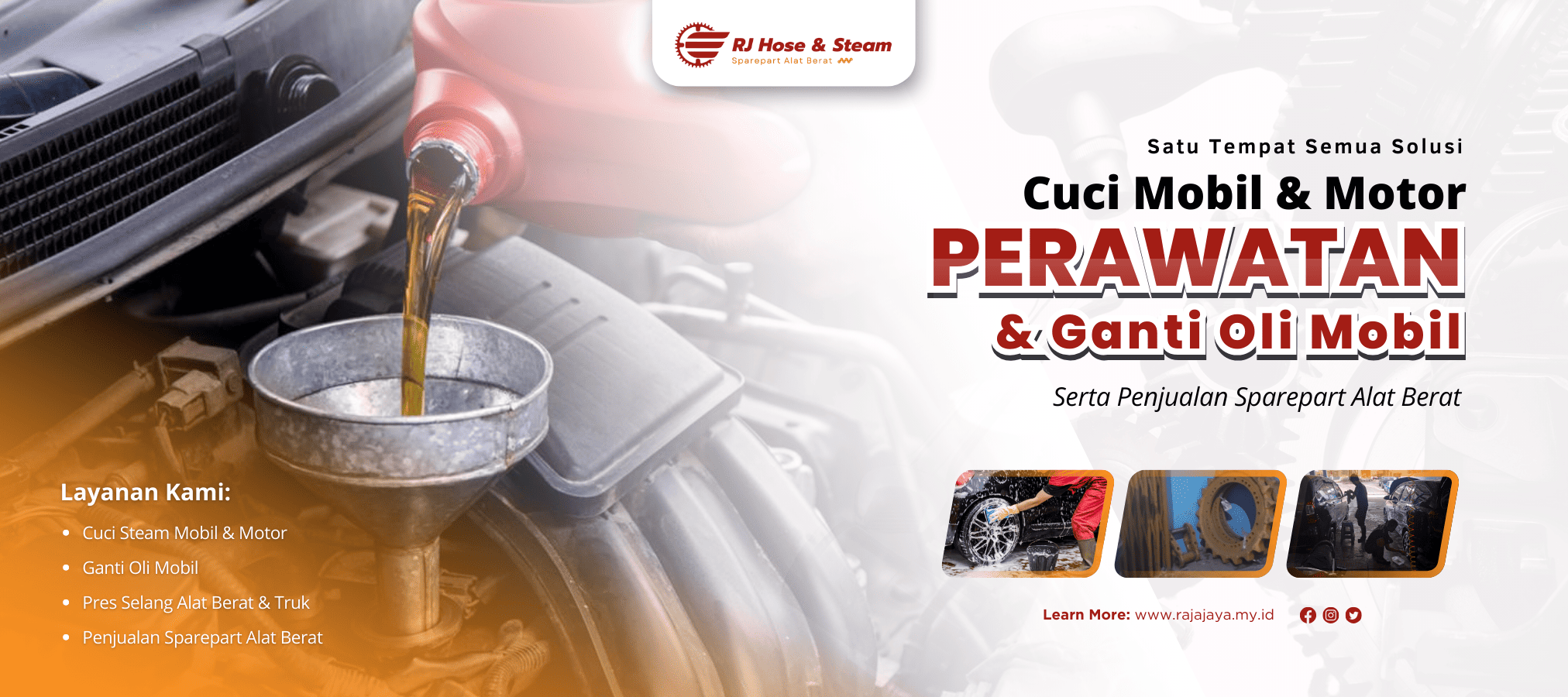 RJ HOSE & STEAM adalah solusi lengkap untuk kebutuhan perawatan kendaraan dan alat berat Anda. Kami menawarkan layanan profesional dengan hasil maksimal, mulai dari cuci steam mobil dan motor, ganti oli mobil, hingga pres selang untuk alat berat dan truk.